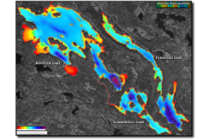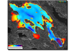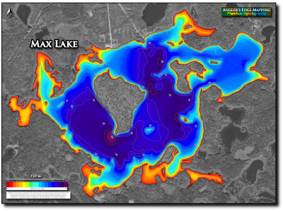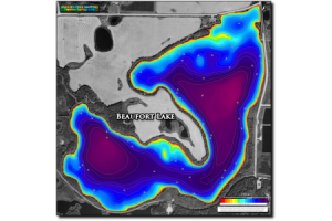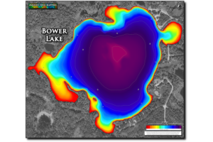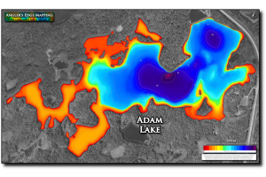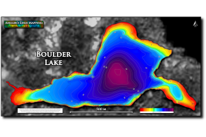 Your Lake print maps. These stunning products are based on data collected during our meticulous on-the-water bathymetric (depth) surveys. Even for a small lake, the timeline for surveying is measured in days (weeks or even months for larger lakes)! After data collection and post-processing is complete, carefully selected colour gradients in combination with detailed contour lines are used to show depth variation and underwater structure such as reefs, points and humps for your favorite lakes and rivers. Greyscale aerial photographs provide the perfect back-drop.